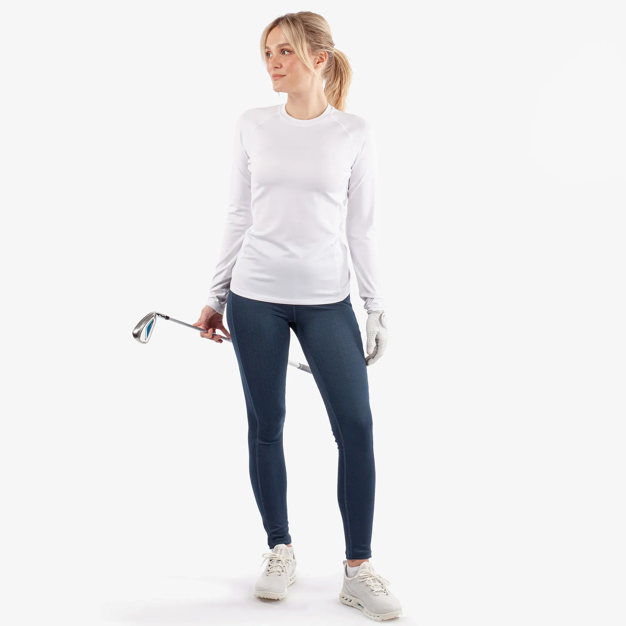 Specifically developed for golf in cold conditions, the Elaine base layer top is stretchy and soft, allowing freedom of movement and a full range of motion while you play. Made from a solution-dyed, bluesign® fabric, this light, airy material provides thermal protection while allowing full breathability. The Elaine women’s thermal base layer is the ultimate base layer to wear under your shirt during colder rounds, or during any winter activities.