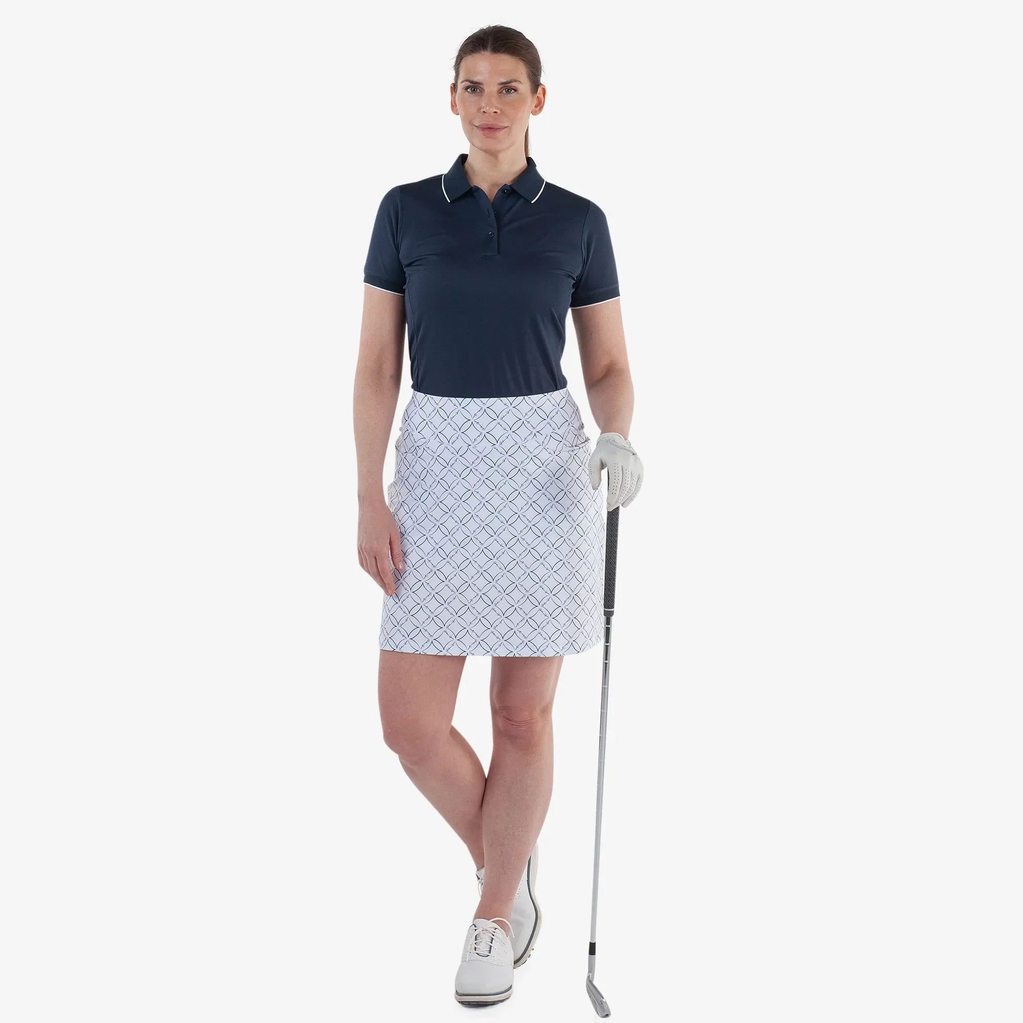 The Marielle golf skirt combines style and performance, featuring a delicate pattern with a hidden cursive logo or available in solid colours. Made from breathable, quick-drying VENTIL8™ PLUS fabric, this skirt offers UV protection 20+ to shield you from the sun. The stretch fabric ensures flexibility and comfort, while the inner shorts provide added support and coverage. Front pockets are perfect for carrying small essentials.