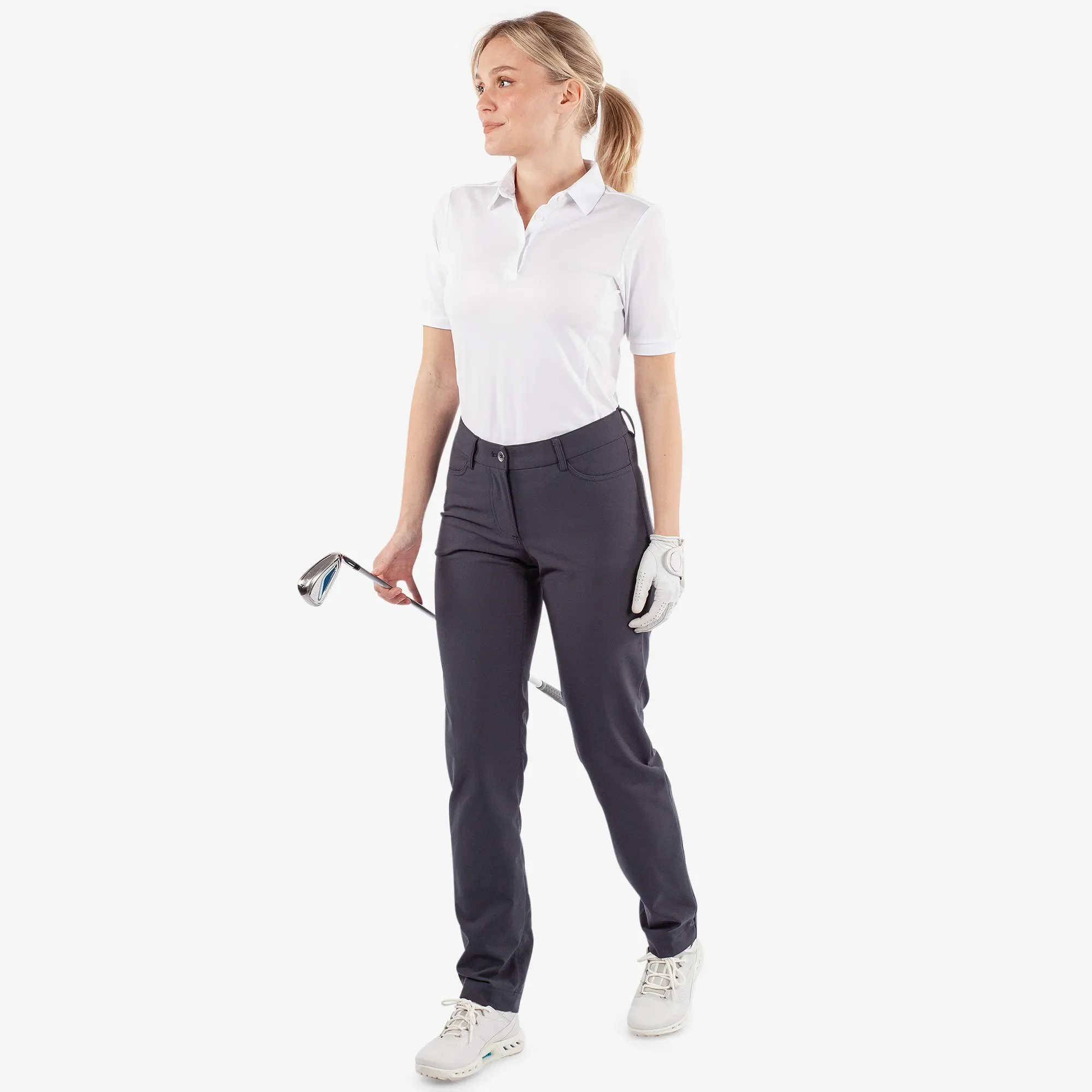 Introducing Nellie, a new high-waisted technical golf pant with a straight leg. Designed to be worn during activity, as an everyday pant, or even to wear to the office, Nellie is a stretch activewear pant disguised as tailored trousers. An alternative to our classic Nicole golf pant, this innovative new cut is made from a super soft and comfortable 4-way stretch fabric. Featuring convenient pockets and extreme breathability, we dare you to pair them with a dressy top on a night out — no one will believe you are wearing stretch pants.